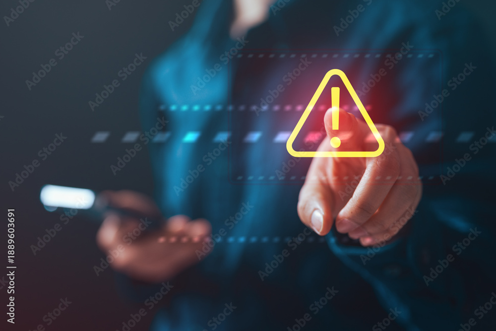 Cybersecurity alert concept with firewall warning icon, representing network defense, threat detection, data protection, and secure digital systems.