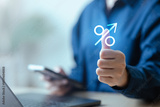 Investor comparing interest rates and annual percentage yield on digital dashboard with smartphone. Concept of savings account, investment income, banking strategy, financial growth.