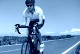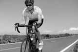 Road bike cyclist man sport athlete training cardio workout on racing bicycle. Male biker biking outdoors training for triathlon.