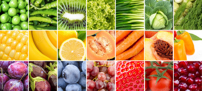 Çeşitli meyve ve sebzelerden oluşan kolaj