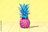 Tropical Pineapple Fruit. Bright Summer Color. Creative Minimal. Hot Summer Vibes. Pink Yellow pineapple on Sunny background. Trendy fashion Style. Pop Art