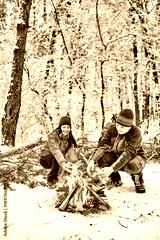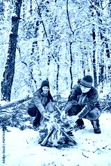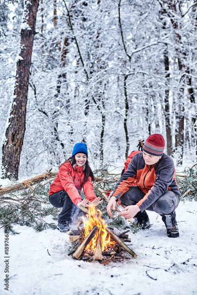 Tourists on a halt in the winter forest