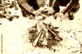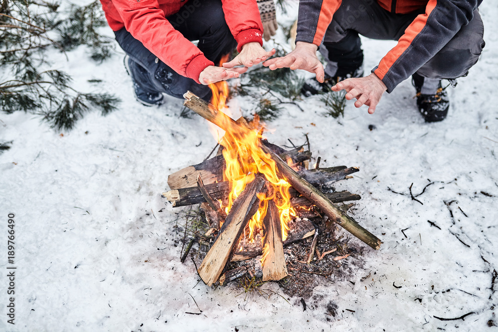 Tourists on a halt in the winter forest