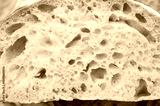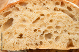 Close-up texture of homemade artisan sourdough bread. Macro photography of a slice of bread. Food background