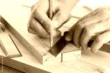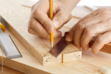 DIY concept. Woodworking and crafts tools. Carpentry hand tools. Planers, chisels, saw, measuring tools. Craftsman makes a wooden parts. Wooden background. Isolated on white