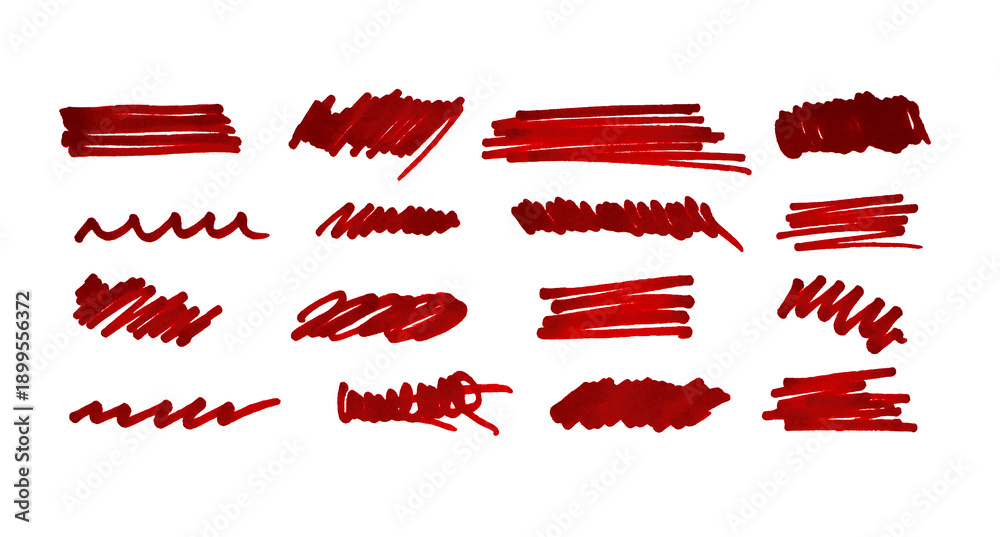 PNG Set of hand drawn red marker line design element, grunge strokes, doodle lines underline scribble