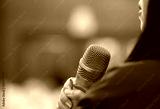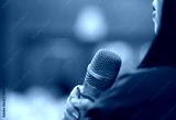 Smart Businesswoman speech or Speaking with microphone in Seminar hall, hand gesturing protesting or belief for explaining in conference hall. Speaker tedtalk is vocalized form of communication humans
