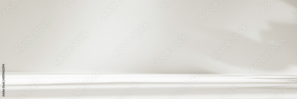 Abstract white color studio background for product presentation. Empty room with shadows of window and flowers and plant leaves . 3d grey room with copy space. Summer concept. Blurred backdrop. Banner