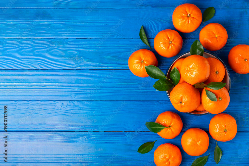 Fresh, ripe, juicy tangerines on the table. Whole and halved tangerines, clementines with green leaves. Citrus fruits. Tangerine or clementine. Fresh oranges. Vitamin C. Natural vitamin. Orange.