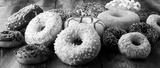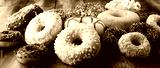 assorted donuts with chocolate frosted, pink glazed and sprinkles donuts.