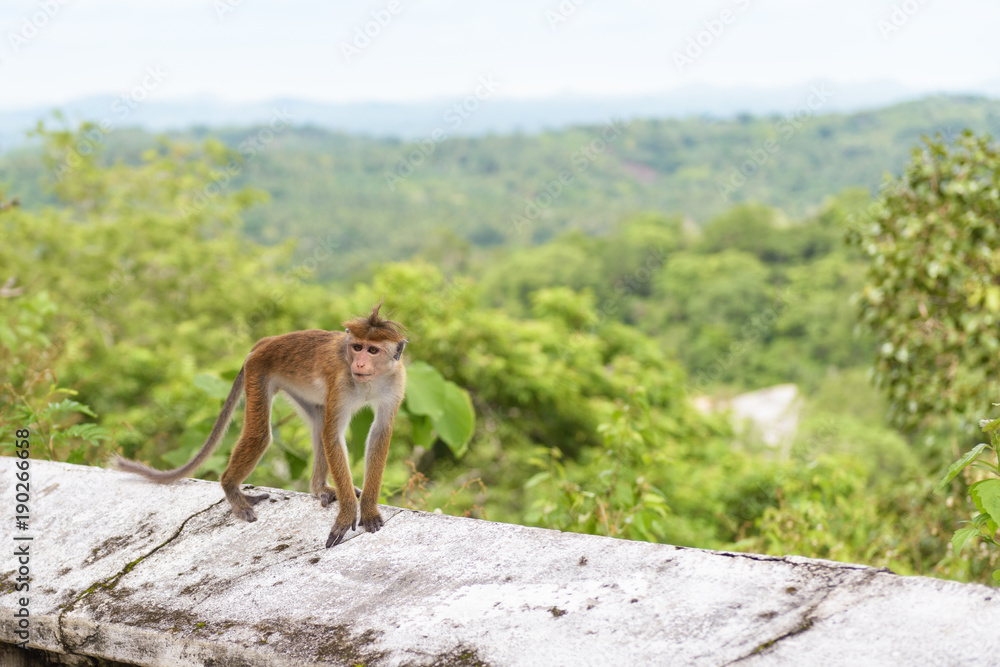 Monkey is on the ancient Buddhist temple in Sri Lanka
