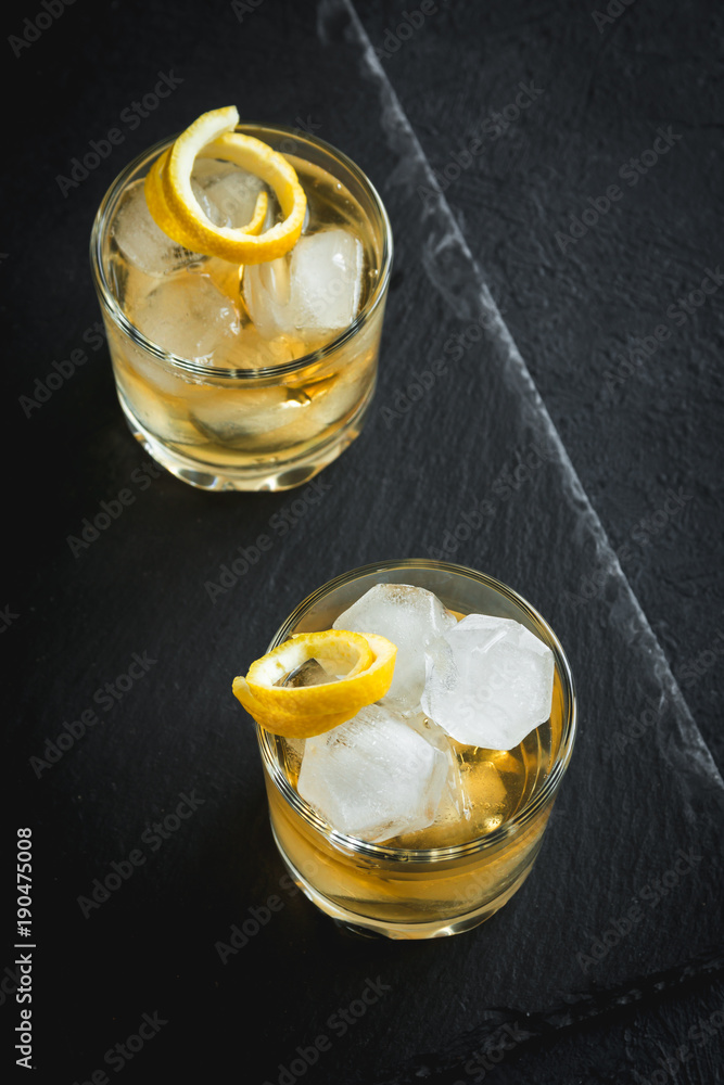 Whiskey on the rocks with lemon