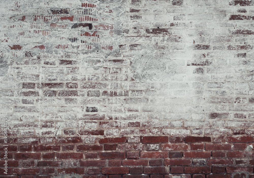 old brick wall of red and white brick, covered with plaster in some places covered with whitewash, grunge design