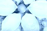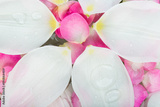 growing, greening, floristic work concept. there are great white petals that are floating on the surface of the transparent clean water, they compose a circle and look like flower from top view