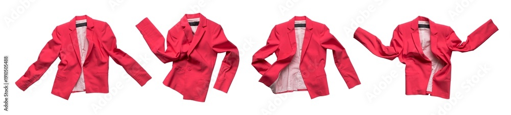 Bright spring pink womens blazer isolated on white background. Jacket collection. With clipping path. Fuchsia-colored cutout jacket. Wardrobe staple, suitable for design, or store advertising. Mockup