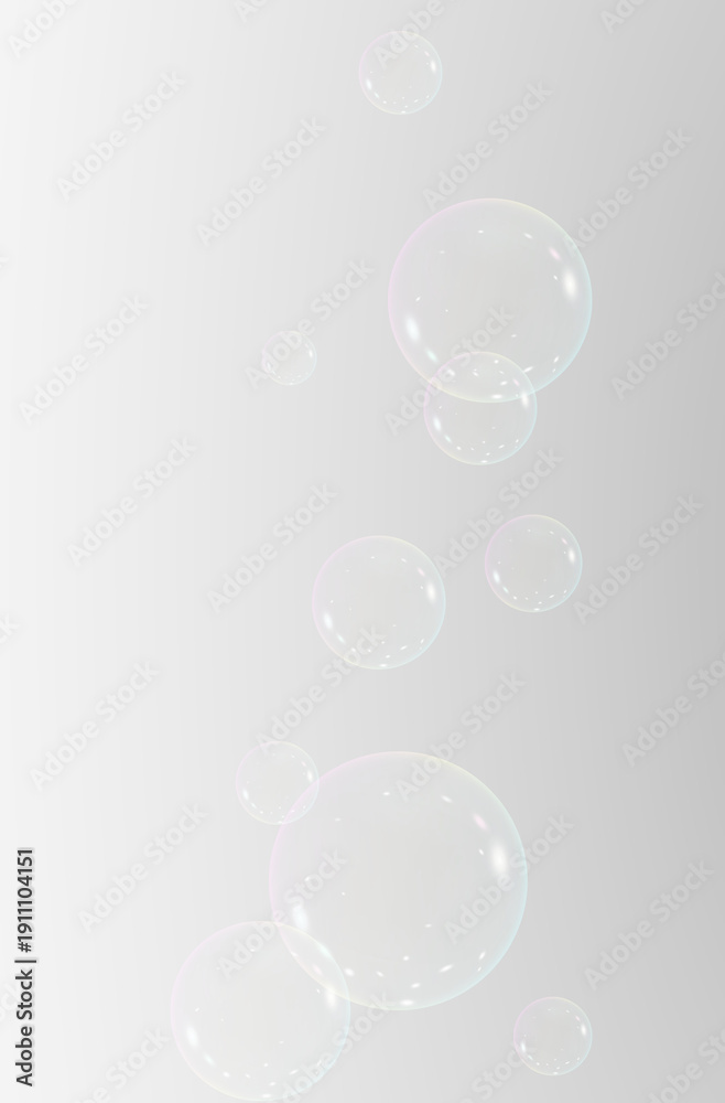 Realistic soap bubbles vector, png on a transparent background. Flying and falling soap bubbles.