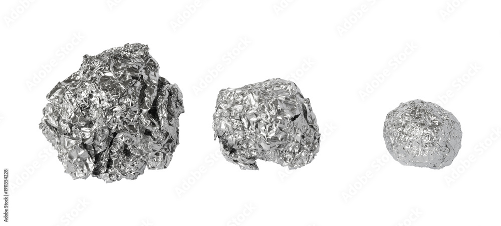 crushed aluminum foil ball isolated