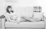 Attractive and beautiful middle aged woman sitting on sofa and relaxing at home. Menopause