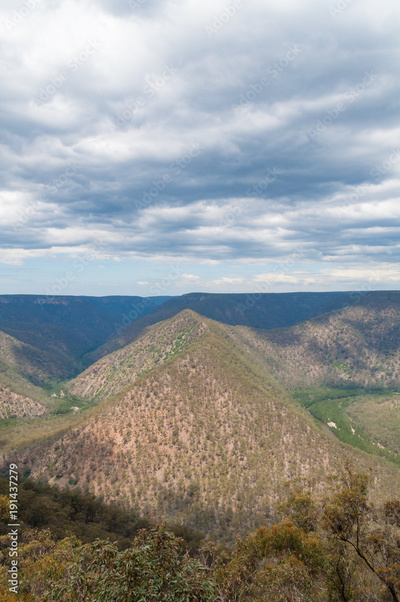 Spectacular landscape of mountains, hills and river