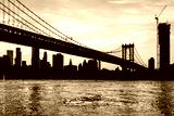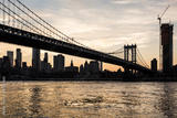 Stunning sunset over the Manhattan bridge and the Manhattan financial district across the East river from Brooklyn in New York City, USA