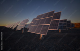 Solar panels with solar tracker at sunset