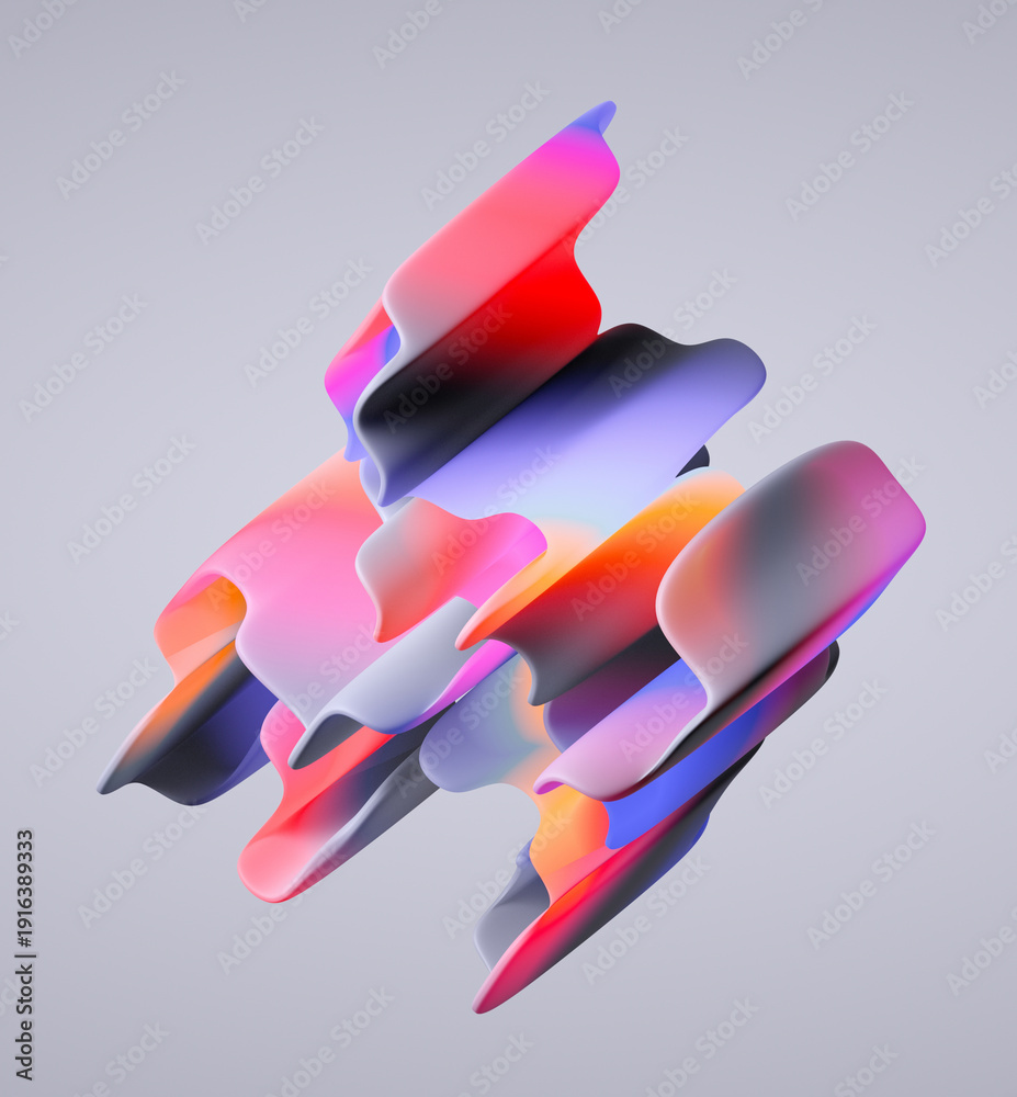 abstract multicolored dynamic shape isolated on neutral background, modern wallpaper with folded gradient ribbon, 3d render