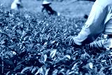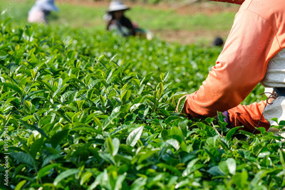 Farmer hands picking fresh green tea bud, Tea plantation agriculture, nature background