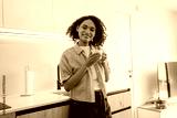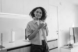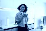 Relaxed Woman Standing Confidently In Modern Kitchen Sipping Coffee During Routine Morning