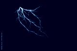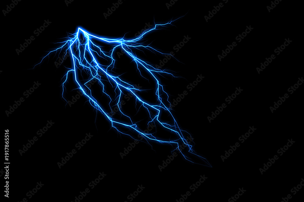 A colossal dynamic electric blue lightning bolt dominates a black