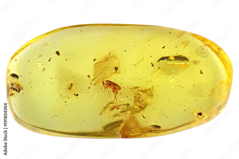 Baltic amber with marsh beetle isolated on white background