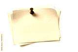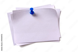 Several untidy white oblong sticky post it note pinned pushpin isolated on white background photo
