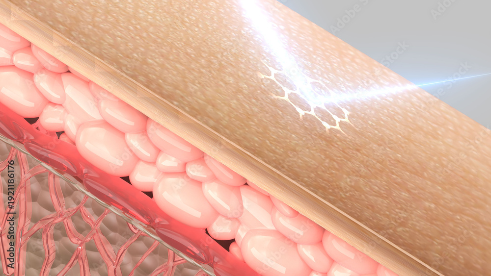 Skin cells are nourished with a serum drop and protected from sun damage, forming a base for a 3D skincare and sunscreen regimen.