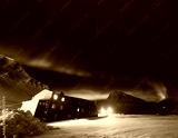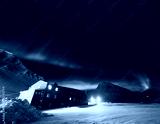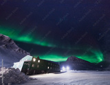 The polar arctic Northern lights aurora borealis sky star in Norway Svalbard in Longyearbyen city snowscoter mountains