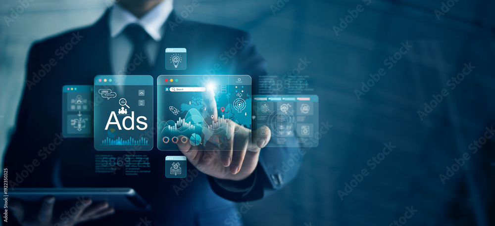 Analyst uses a tablet and digital dashboard for data business analysis showing growth and data management system metrics connected to the big database with Ai technology for finance, Banking,Marketing