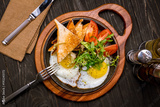 Fried eggs with tomatoes and toast