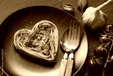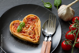 Spaghetti pasta heart love italian food diet abstract concept on black background