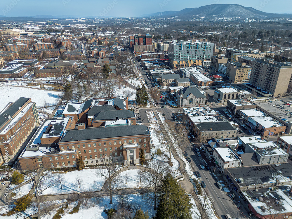 Aerial view of State College town in winter sunny day, State College, Pennsylvania.