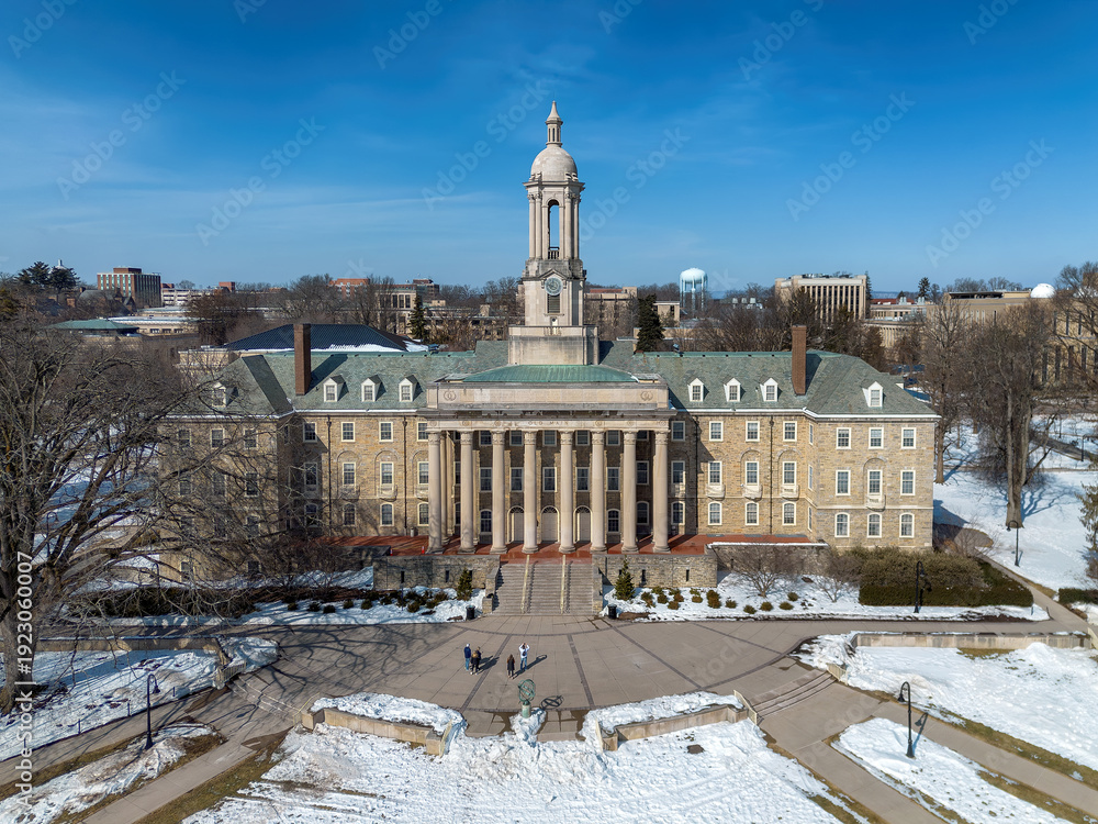 Aerial view of the campus of Penn State University in winter sunny day, State College, Pennsylvania.