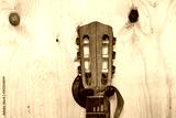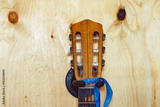 the neck of the guitar to the wall