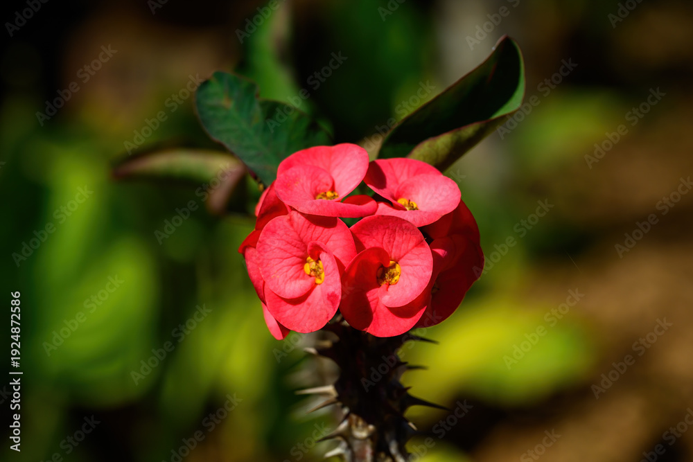 Euphorbia milli flower or Crown of thorns plant Bright flowers with beautiful, thorny stems.