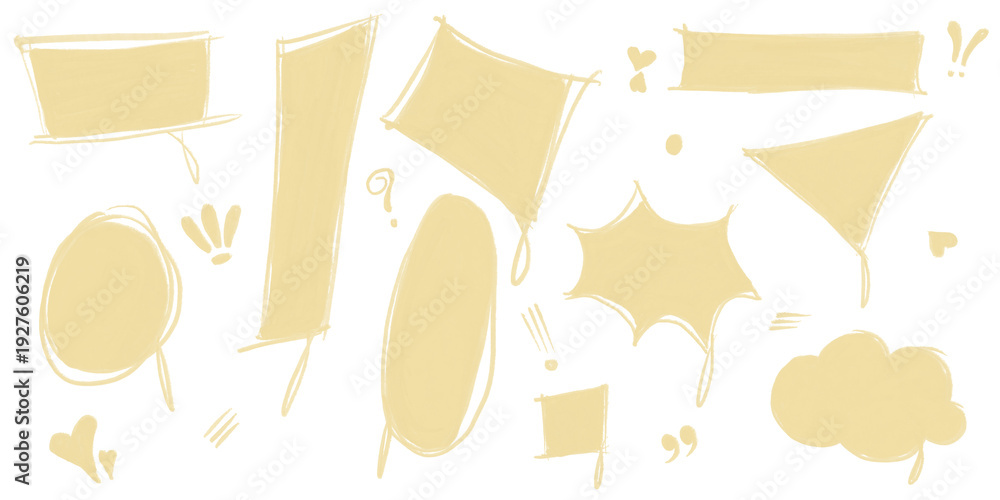 Collection of hand-drawn yellow speech bubbles transparent background for PNG isolation.