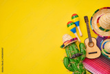 Mexican fiesta decoration with cactus and vibrant objects