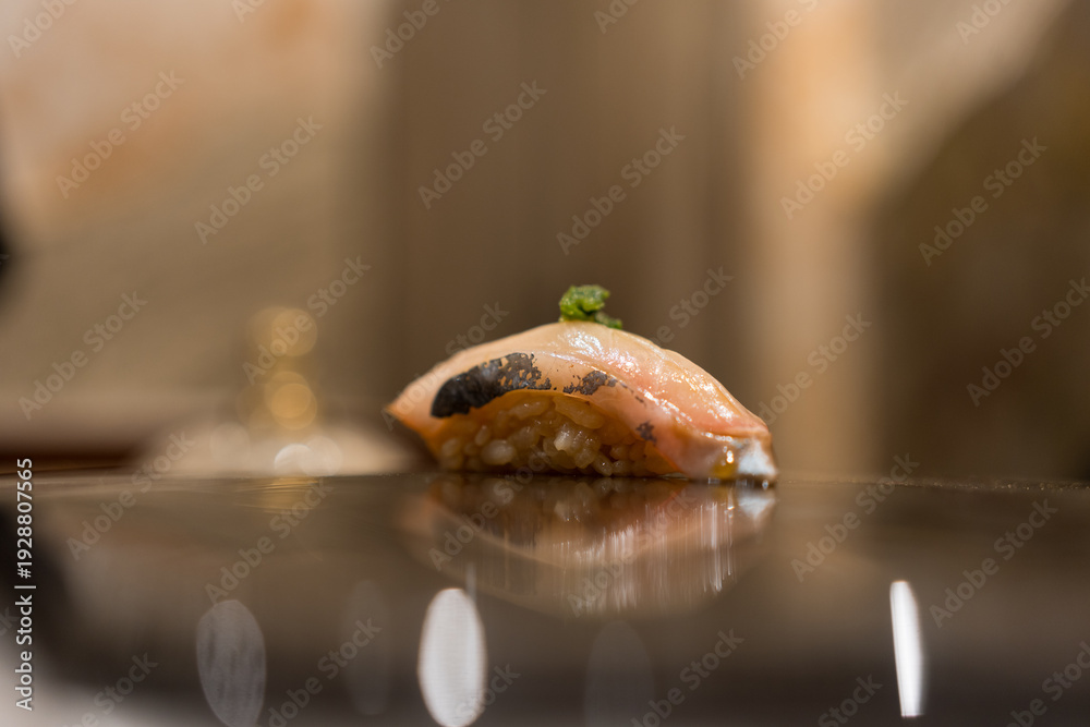 Japanese Omakase meal, Delicious Hamachi Sushi. Selective focus