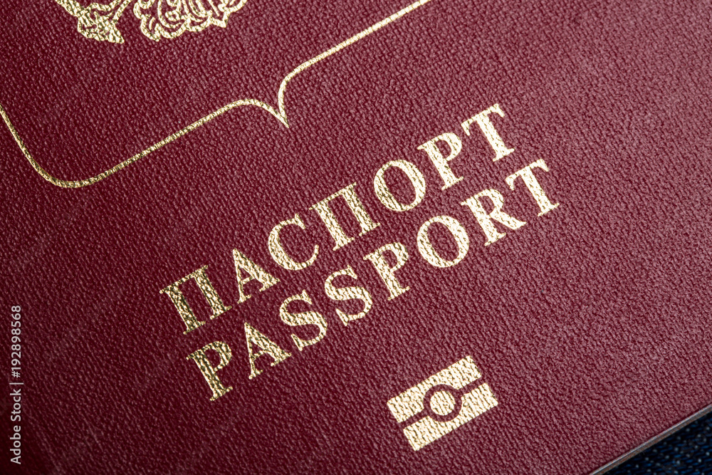 Fragment of the cover of the Russian international passport. Clos eup image