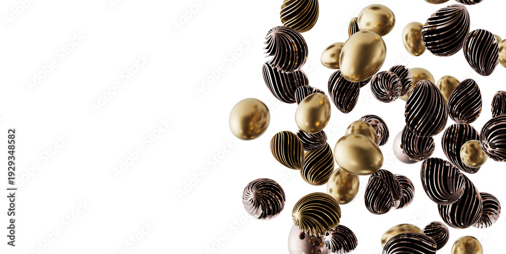 Abstract design of golden and black textured shapes floating, perfect for modern and luxury concepts on white background
