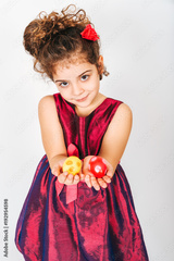 Studio shot of adorable kid girl holding colorful easter eggs