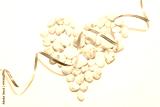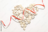 Heart on a white background lined with small white decorative stones, concept romantic, decor, art