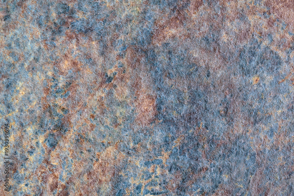 Rough, textured surface with blue and brown color scheme. surface appears to be made of stone or concrete