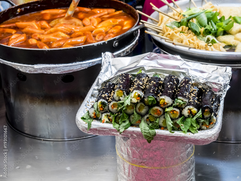 Kimbap (Gimbap) is the most popular Korean food. Gwangjang Market. Seoul, South Korea.