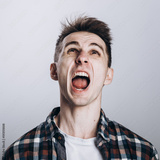 Handsome emotional man isolated over gray background